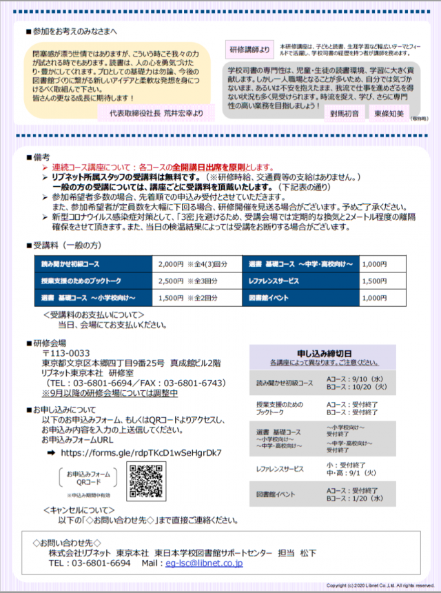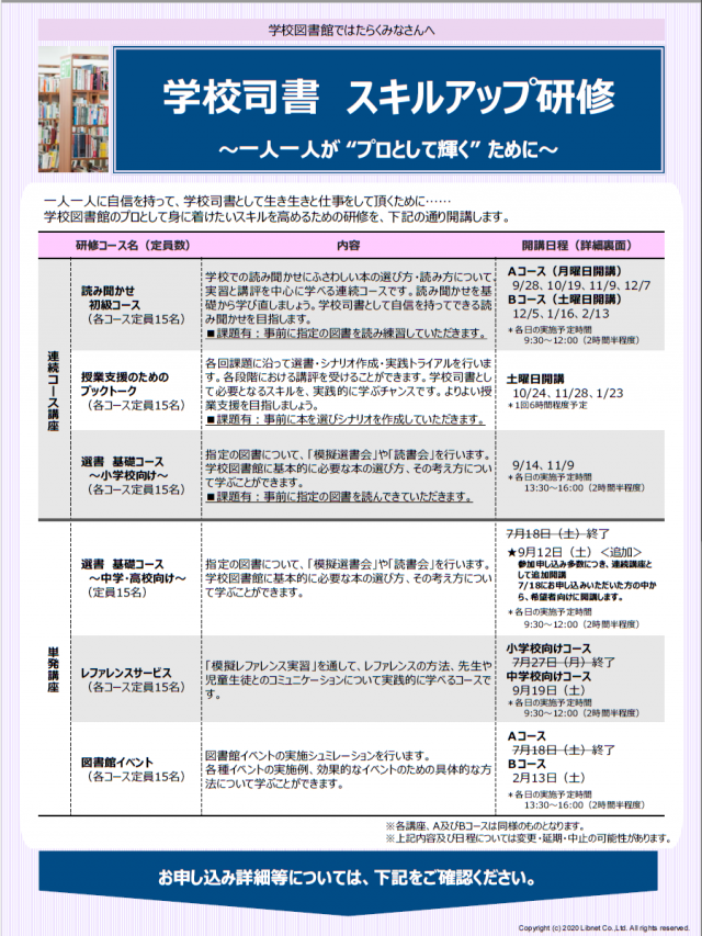学校司書 スキルアップ研修開講のお知らせ